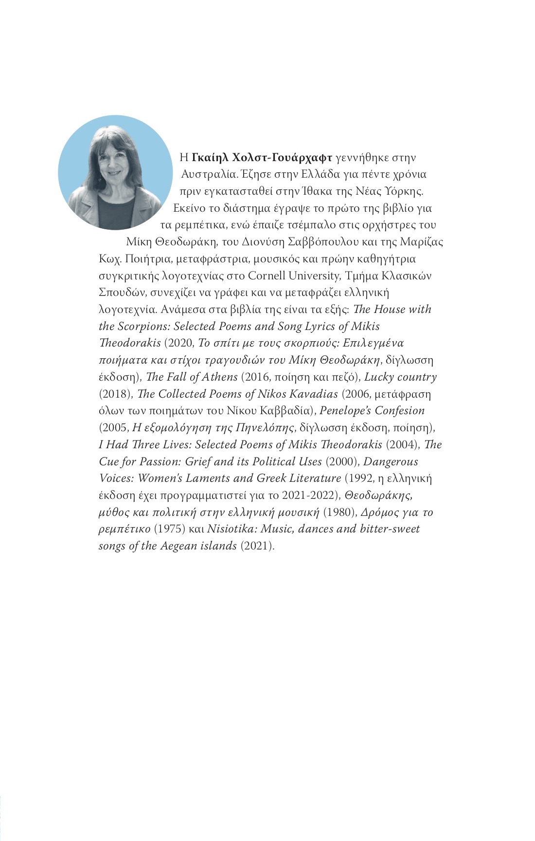 Combining research by pioneering musicologists and her own research into recordings, the songs themselves and through interviews, Gail Holst-Warhaft has turned the same discerning and loving eye on this subject as she did in her now classic book on rembetika, Road to Rembetika.